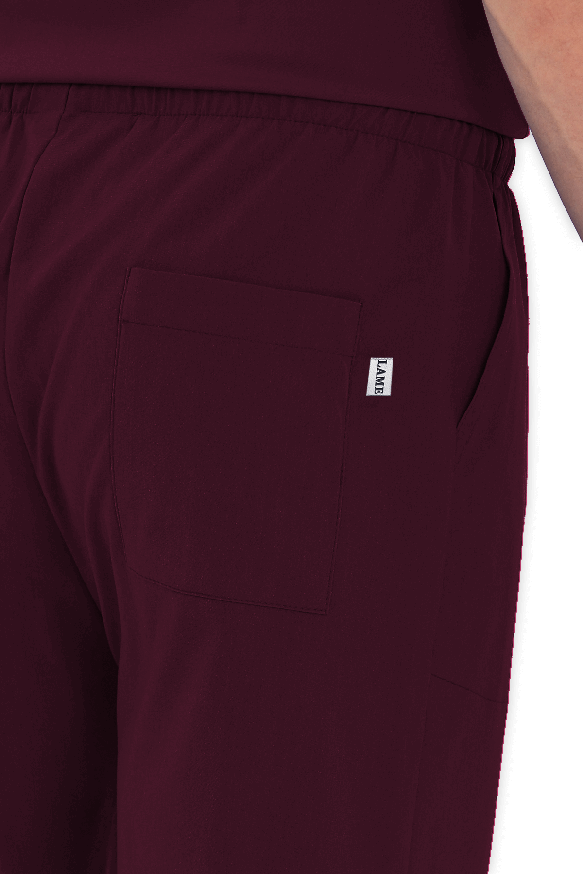 Konforlu Erkek Scrubs Pantolon – Bordo, beli lastikli ve bağcıklı tasarımıyla hareket özgürlüğü sunar. 2 yan cep ve 1 arka cep ile sağlık çalışanları için pratik kullanım!