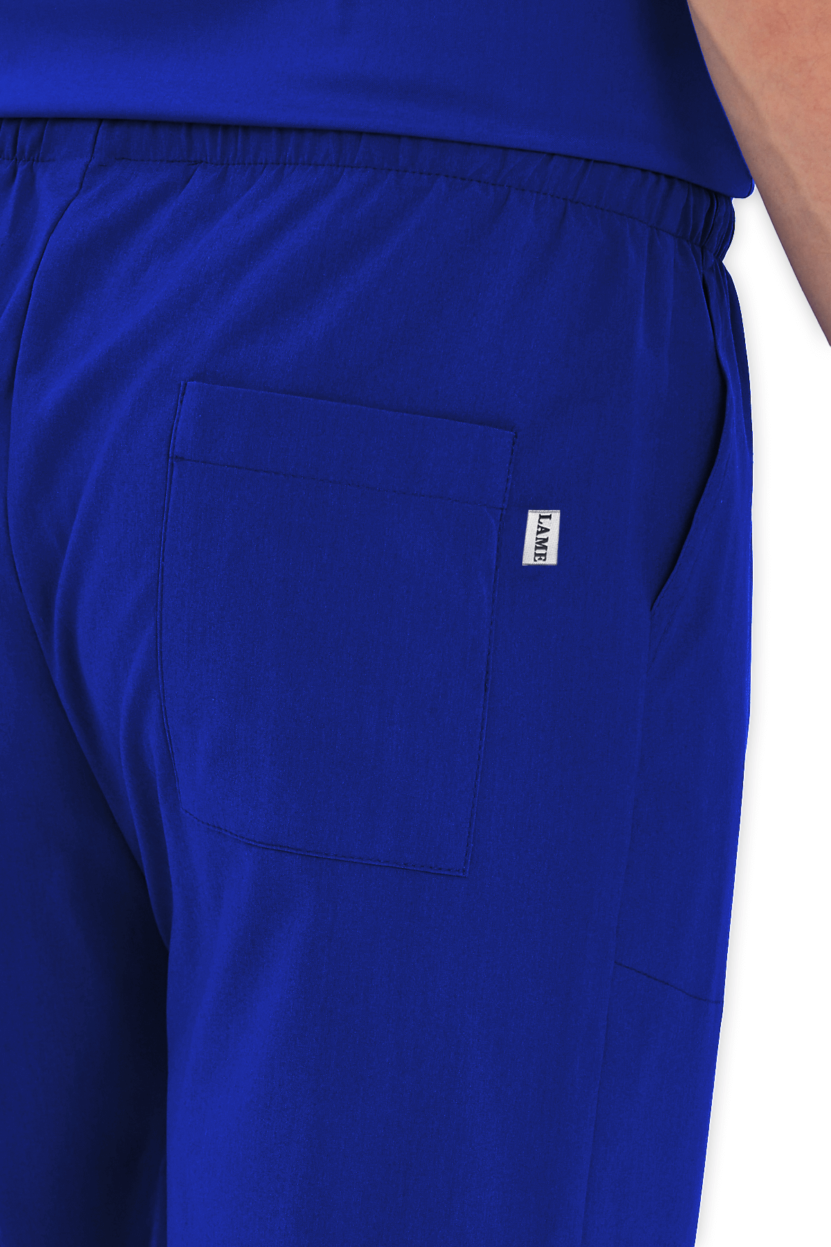 Konforlu Erkek Scrubs Pantolon – Saks Mavisi, beli lastikli ve bağcıklı tasarımıyla hareket özgürlüğü sunar. 2 yan cep ve 1 arka cep ile sağlık çalışanları için pratik kullanım!
