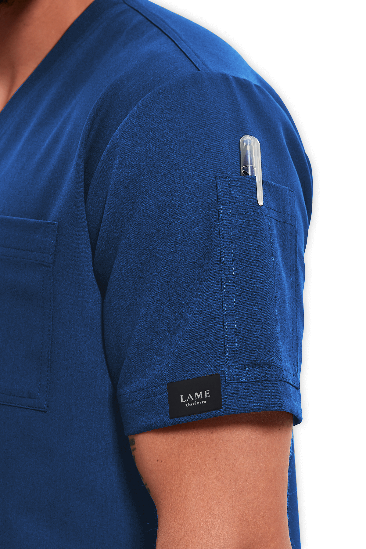 Fonksiyonel Erkek Scrubs Üst 5–Cepli – Petrol Mavisi, V yaka, 1 göğüs cebi, 1 kol cebi ve 4 alt cep (1 telefon cebi dahil) ile maksimum pratiklik sunar. Yırtmaçlı tasarım ile sağlık çalışanlarının 1 numaralı tercihi!
