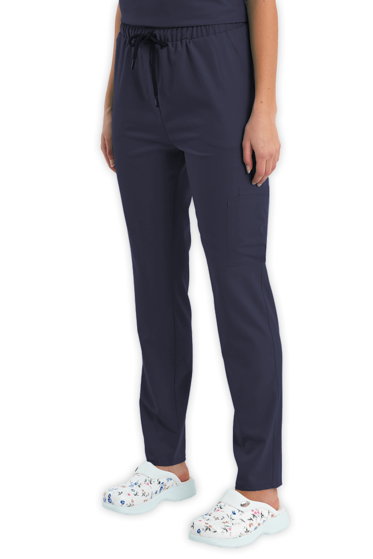 Fonksiyonel Kadın Scrubs Pantolon Kargo Cepli – Antrasit, beli lastikli ve bağcıklı yapısıyla konfor sunar. 2 yan cep, 1 arka cep ve 2’li kargo cebi ile sağlık çalışanları için maksimum depolama!